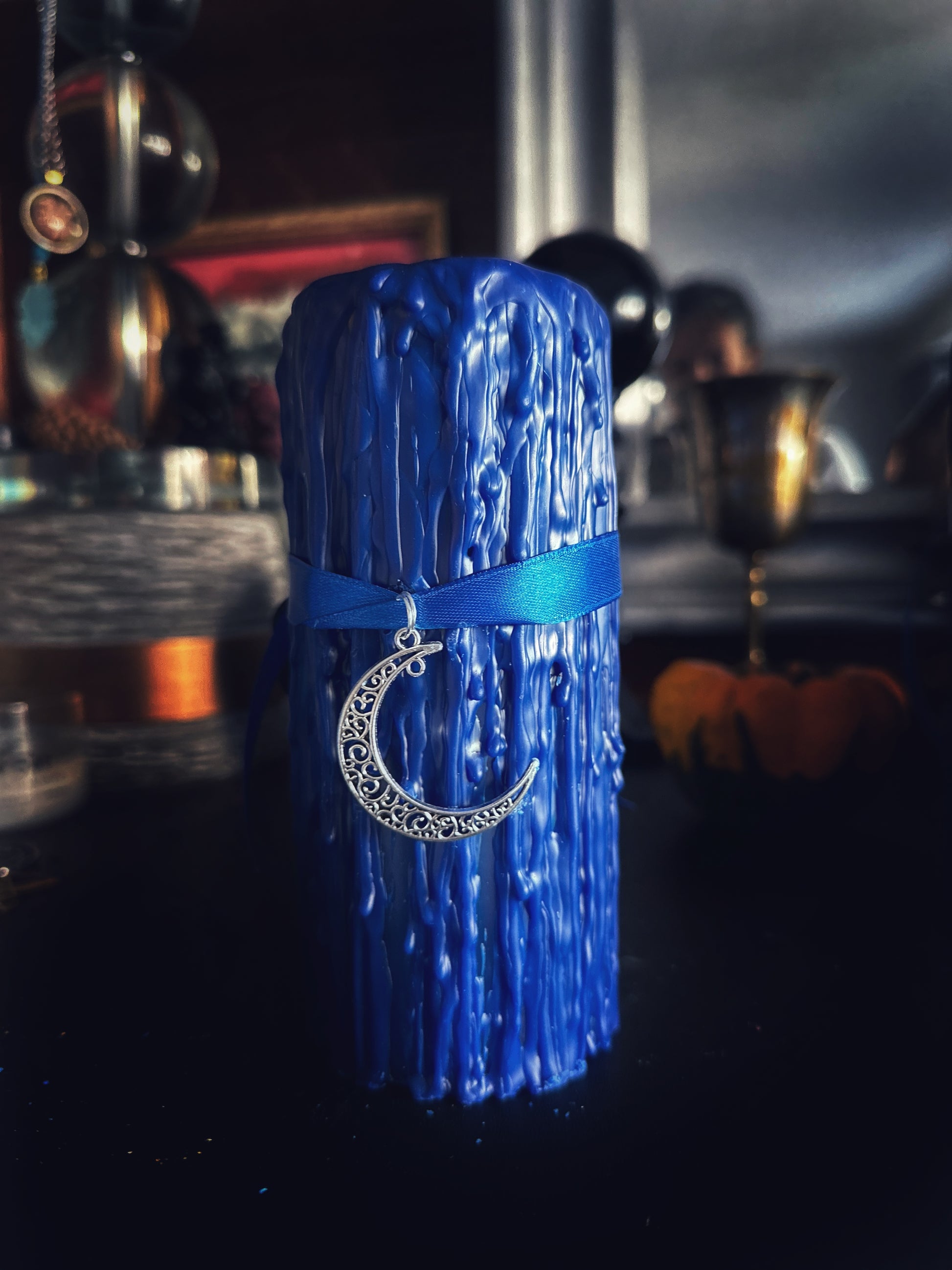 Hand poured and hand dripped pure soy wax pillar candle for your daily rituals and connection with Aradia - The Keeper of the Blue Flame.