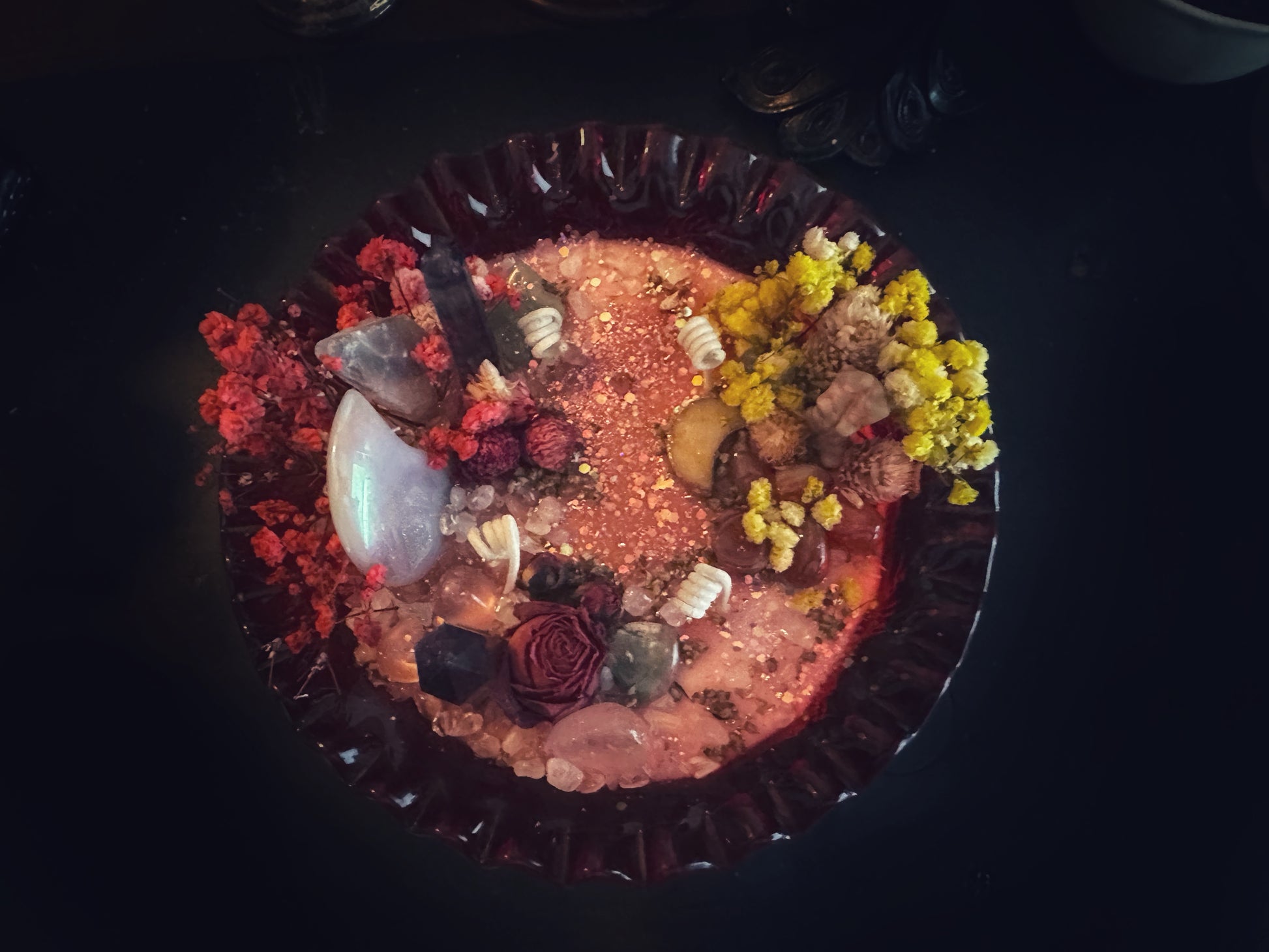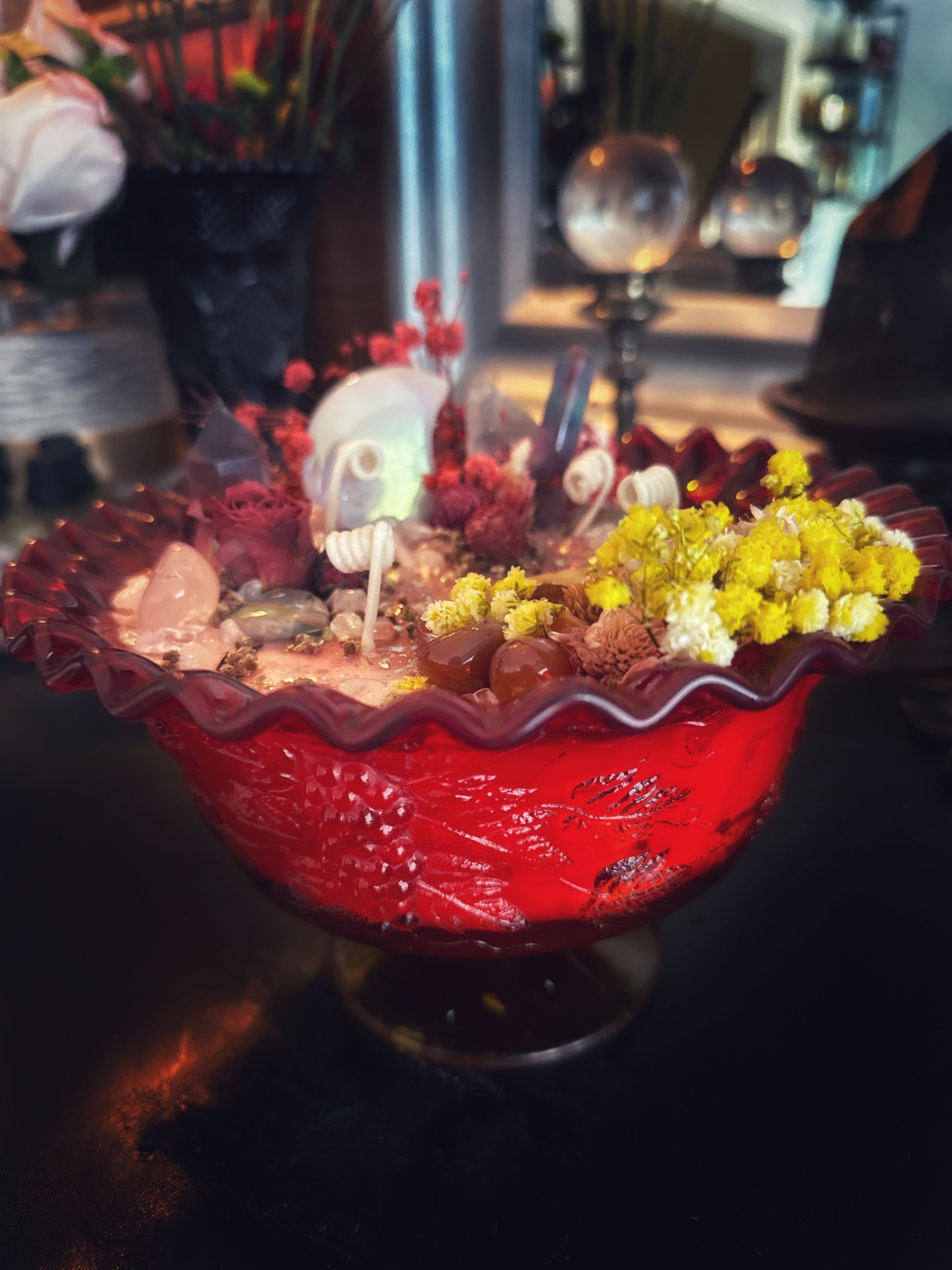 Indulge in the beauty of crystals while filling your home with captivating fragrance and beautifying your home with a vintage piece. It’s the perfect size for an offering bowl or a prosperity bowl at your front entrance. ✨ Ket the blessings continue after the candle is spent.