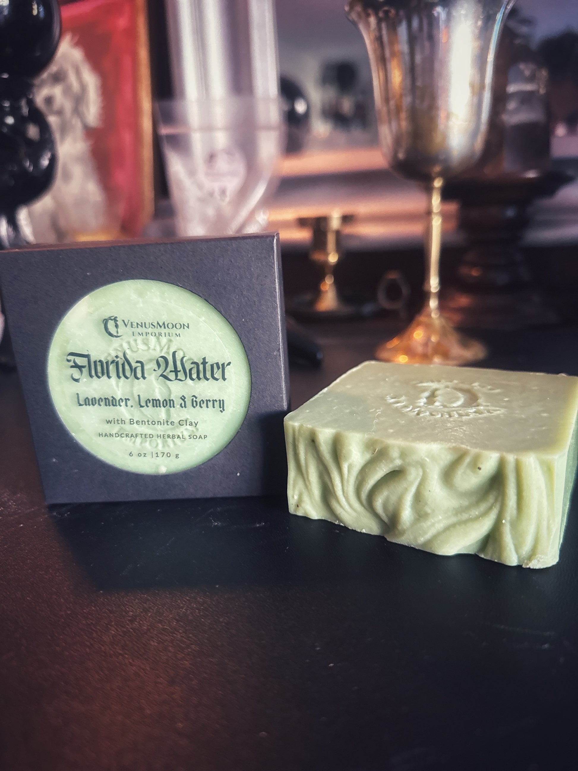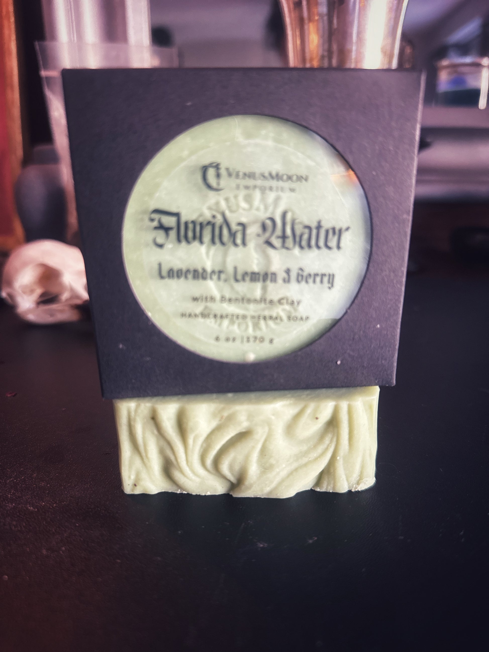 Florida Water Artisan Soap consisting of all the citrus essential oils blends together with traditional Florida Water herbs and resins leaving you completely refreshed and rejuvenated.