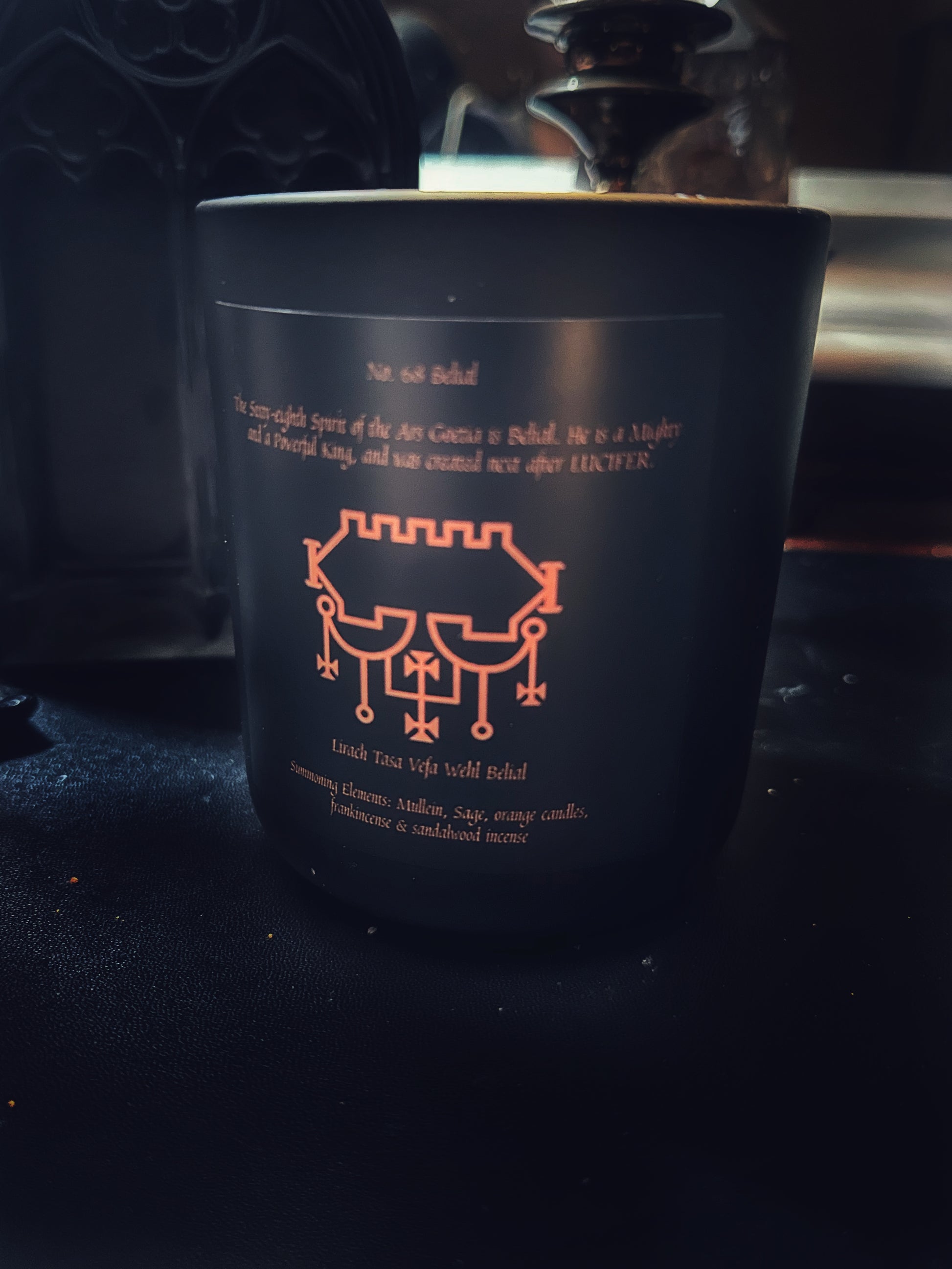 Consecrated in ritual with Belial this candle is both an offering and a devotional to him to honour and work with him. Each ingredient: scent, color and corresponding herbs and resins have been specifically chosen to align with his attributes.