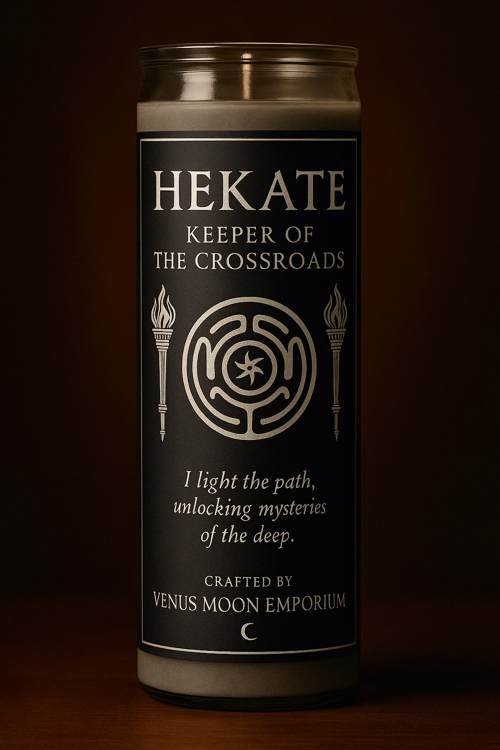 A devotional 7-day candle for the Queen of Witches, Guardian of Thresholds, and Guide through the unseen.